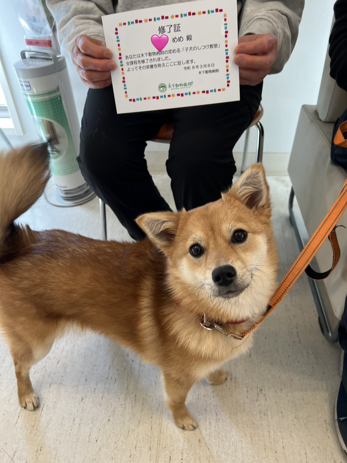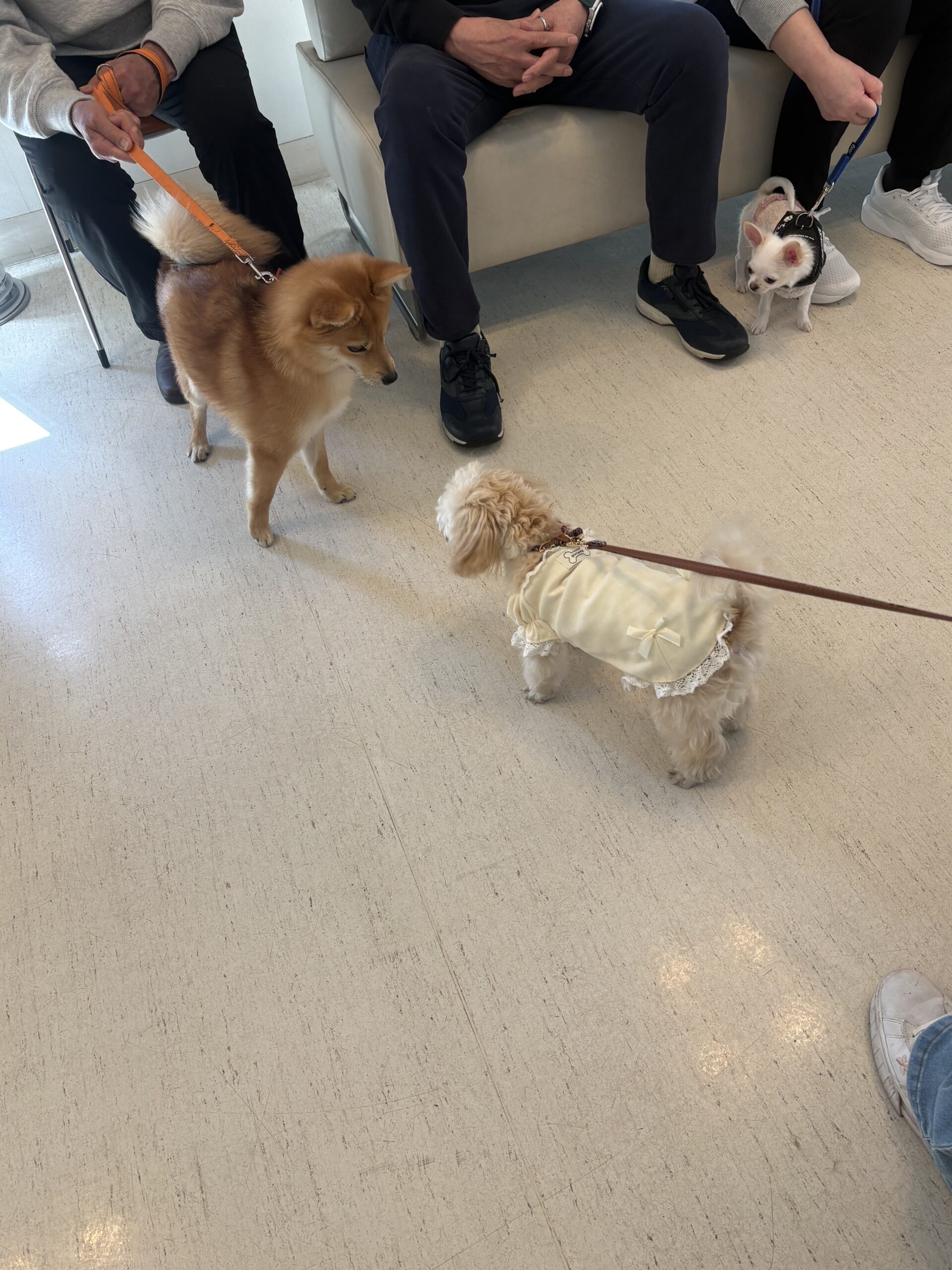 今回のパピークラスでは、トイレ、ハウスのやり方や他のわんちゃんとの触れ合い方について学びました。
